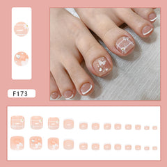 Sueño ligero Mariposa blanca Rubor Amor Destello Diamante Perla ins Viento Uñas de los pies a presión Acabado de uñas Extraíble 24 piezas|365nails
