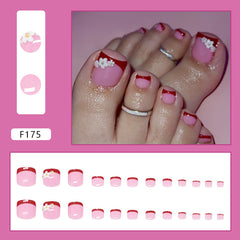 Uñas de los pies extraíbles versátiles blancas francesas con margaritas pequeñas frescas de Xia Jing, 24 piezas |365nails