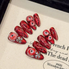 Transforma tu manicura con estas exquisitas uñas postizas hechas a mano , de calidad profesional. Con un impresionante tono rubí oscuro adornado con un llamativo diseño de serpiente tridimensional, están diseñadas para realzar tu estilo sin esfuerzo.