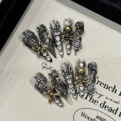 Serie Halloween: uñas hechas a mano, estilo punk retro [esqueleto de bronce y oro], mano fantasma tridimensional | 365nails