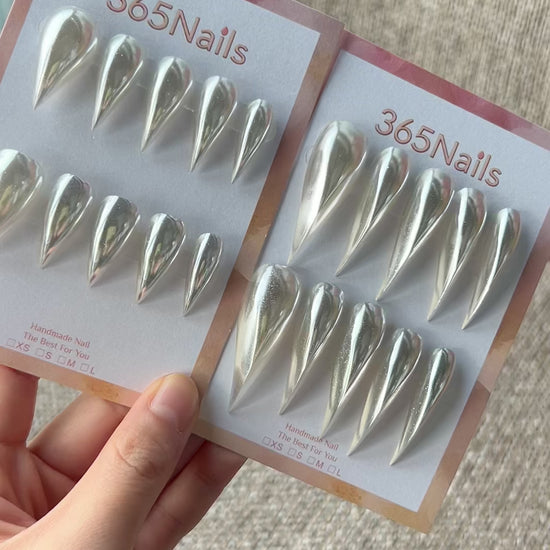 Liquid Silver Dragon Claw Stiletto High‑Shine Chrome|365Nails Premium Handmade Dragon Nail