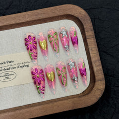 Island Holiday Spice Girl Painted Magic Mirror Pink Flowers Pure Handmade nails | 365nails