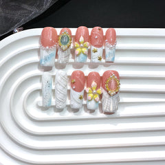 Pearl Floral Ocean Marble French Press On Nails