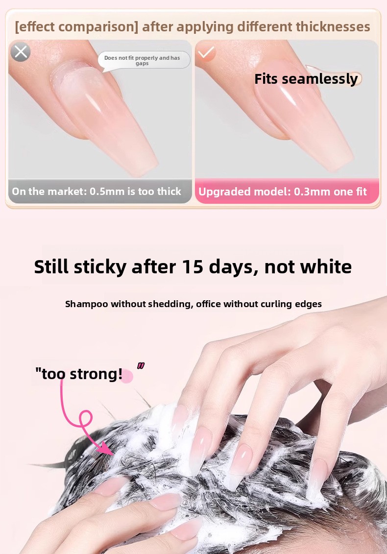 2. Machine-applied nails include the nail tips and outer packaging bag.
