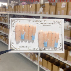Nude Blue Minimal Crystal Accent Press On Nails