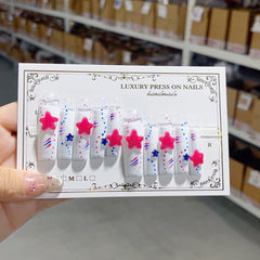 Red Blue Star Pop Art Press On Nails