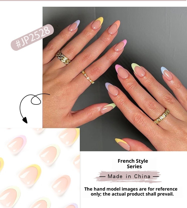 Wearable nail sticker summer multi-color French fresh rainbow wearable nail piece wholesale false nails