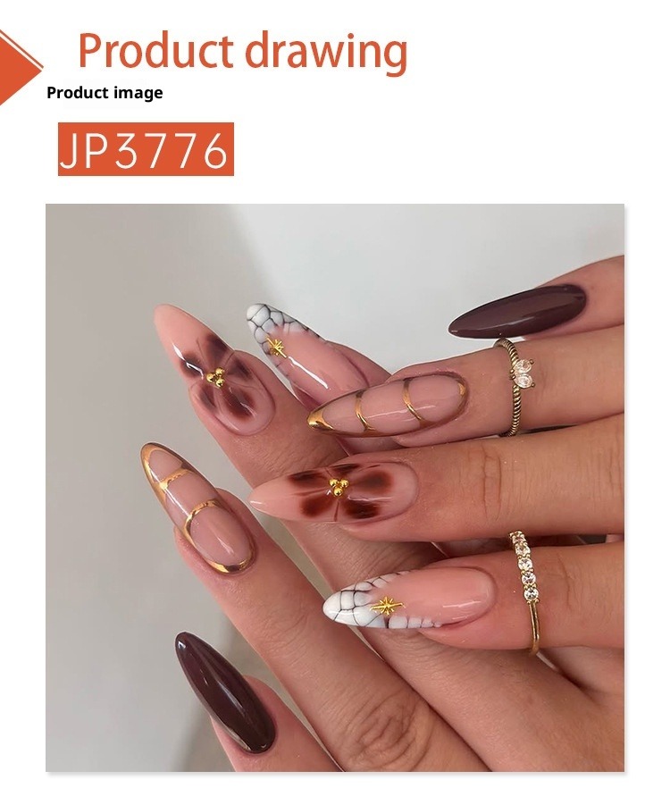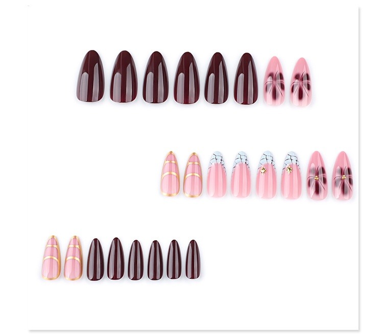 Europe and the United States cross-border special wear armor short and medium almond nail foreign trade French manicure spring and summer flowers fake nail wholesale