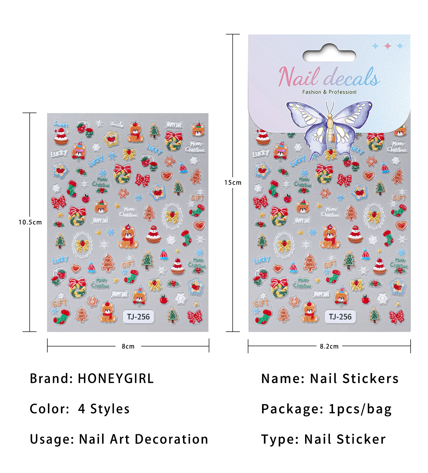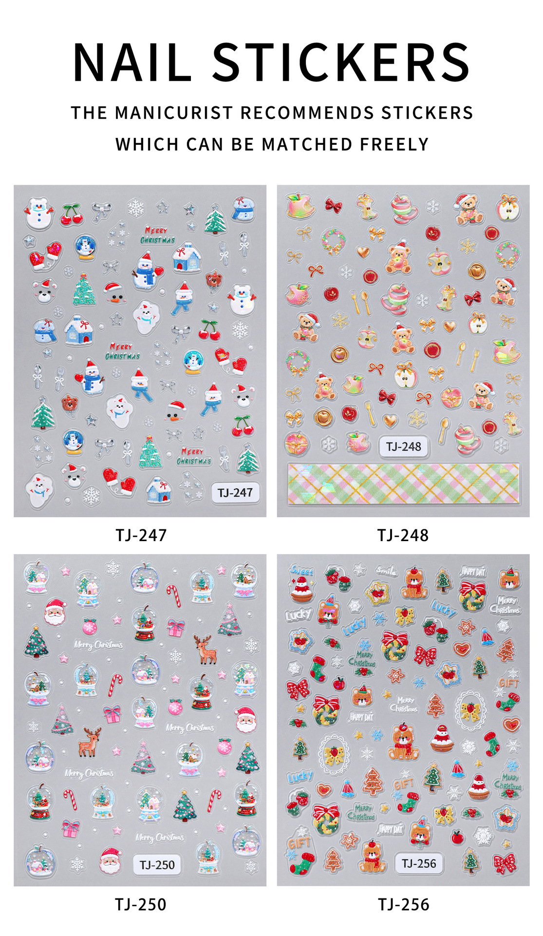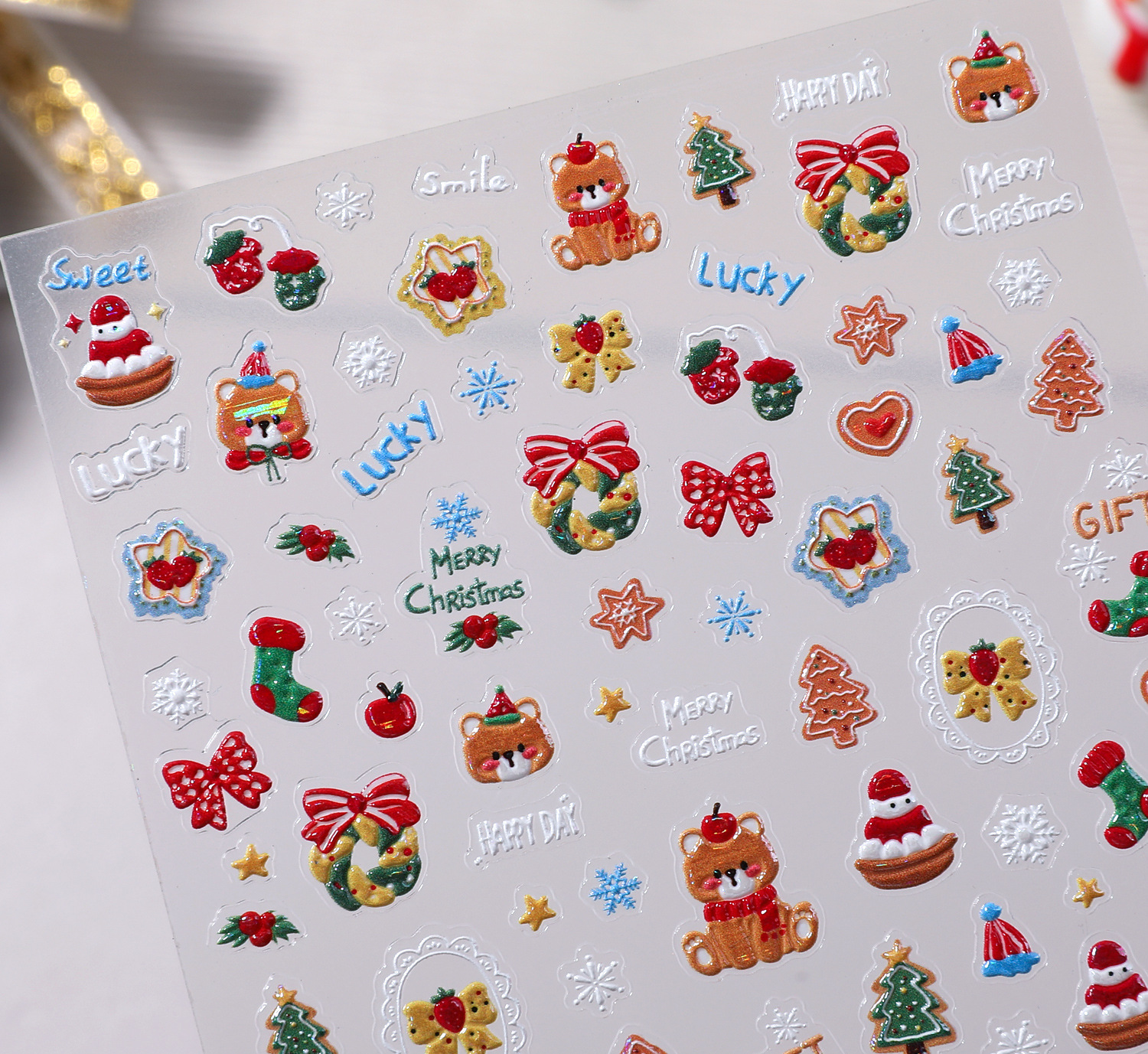 Happy Christmas Nail Art Sticker 5D Embossed Three-dimensional Snowman Christmas Bear DIY Nail Sticker Ornament TJ
