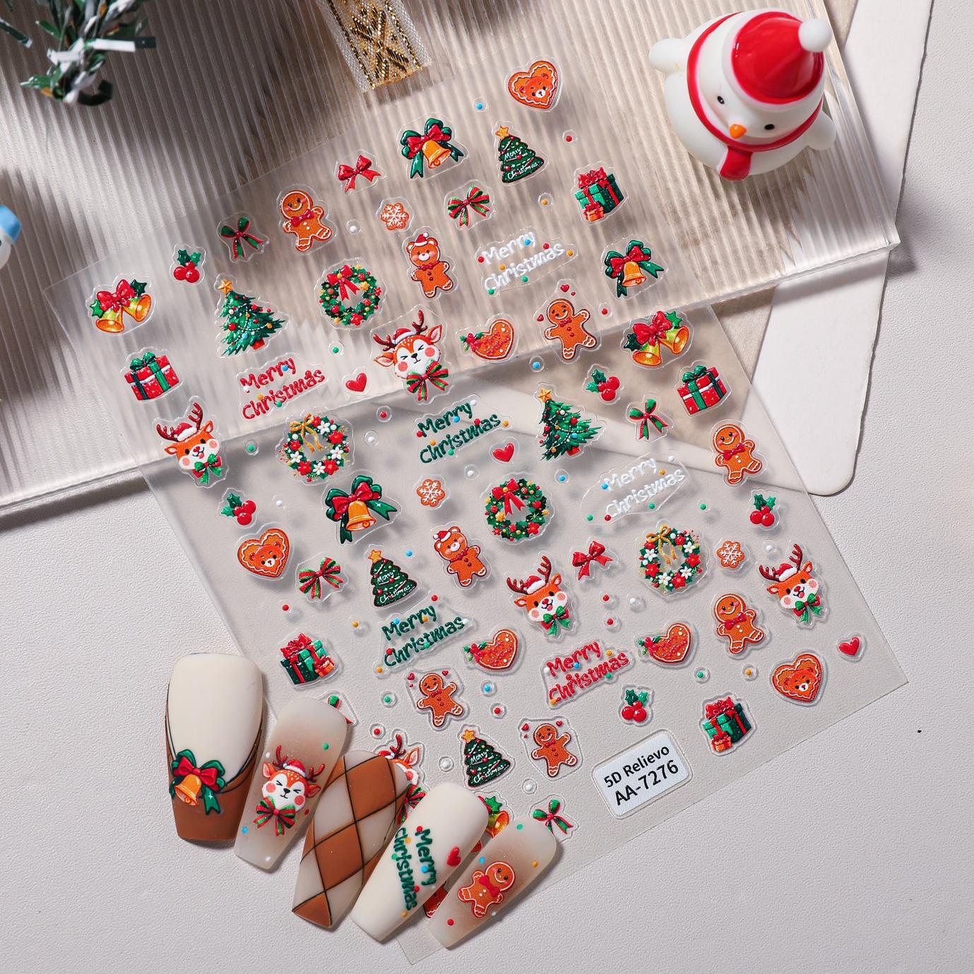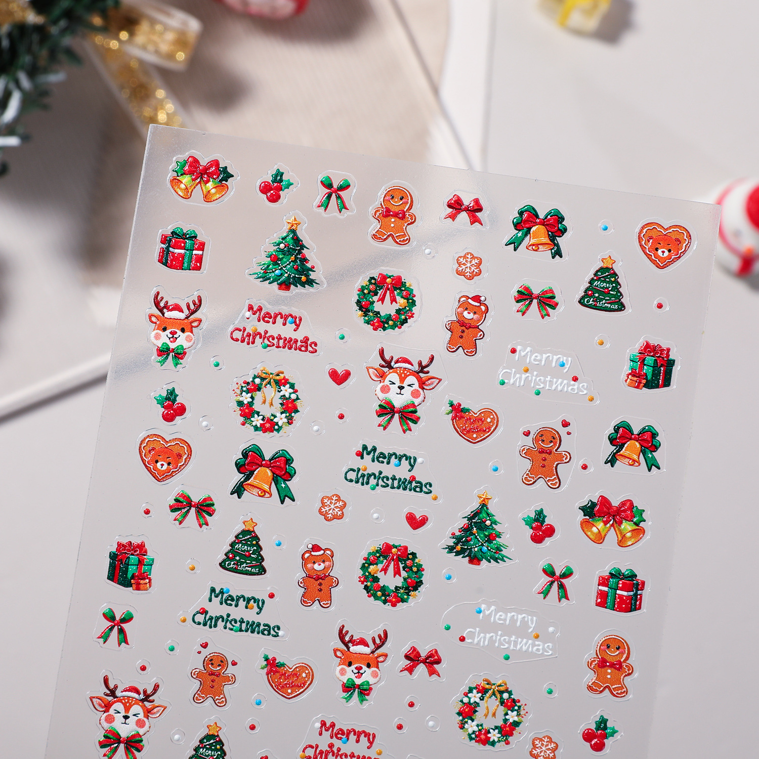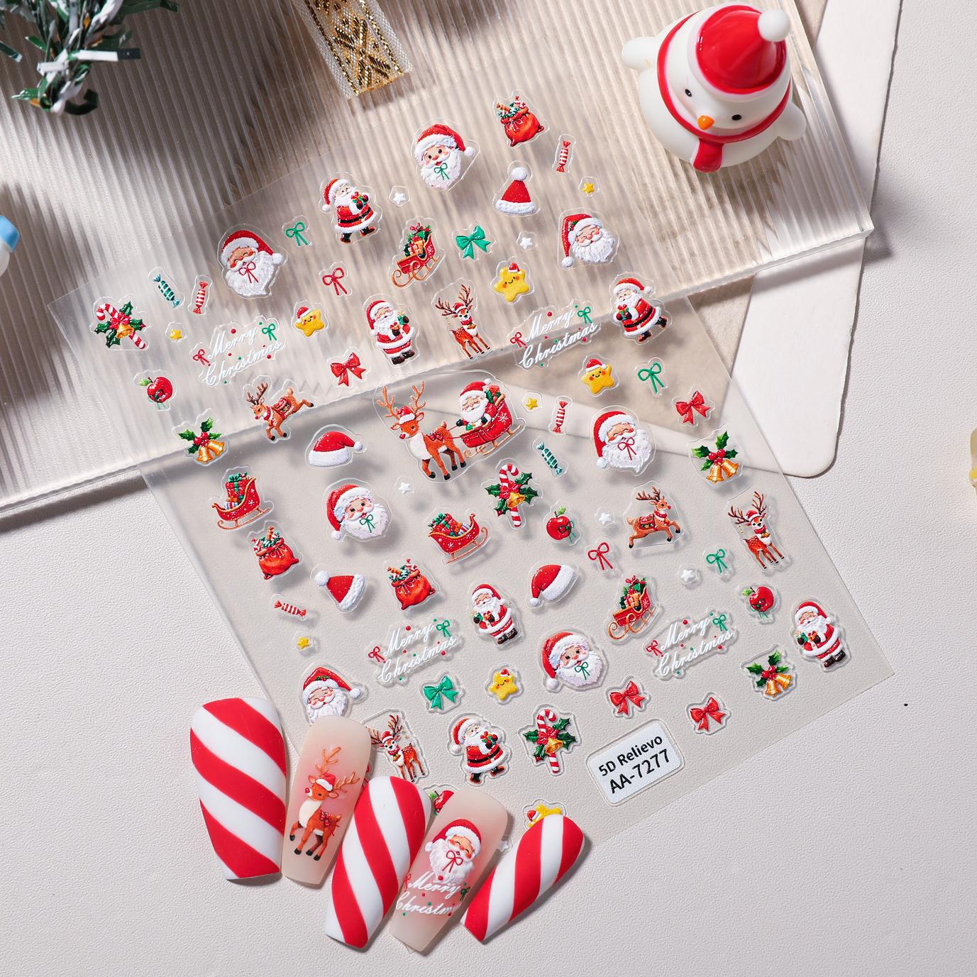 Original Christmas Nail Art Sticker 5D Embossed Three-dimensional Happy Christmas Elements DIY Nail Sticker Ornament AA