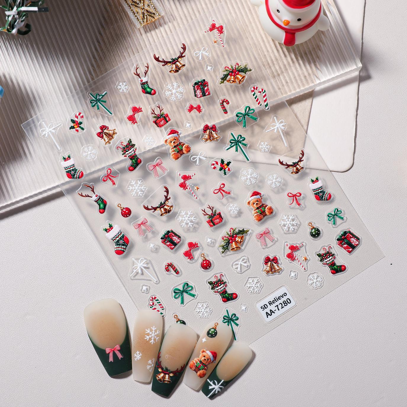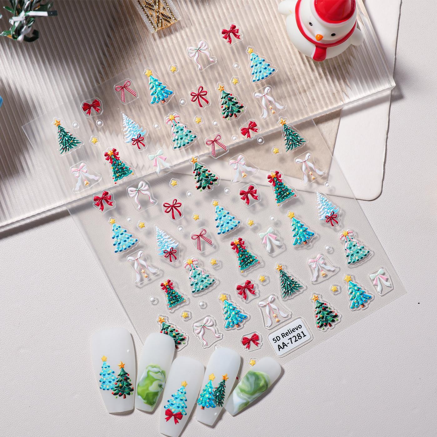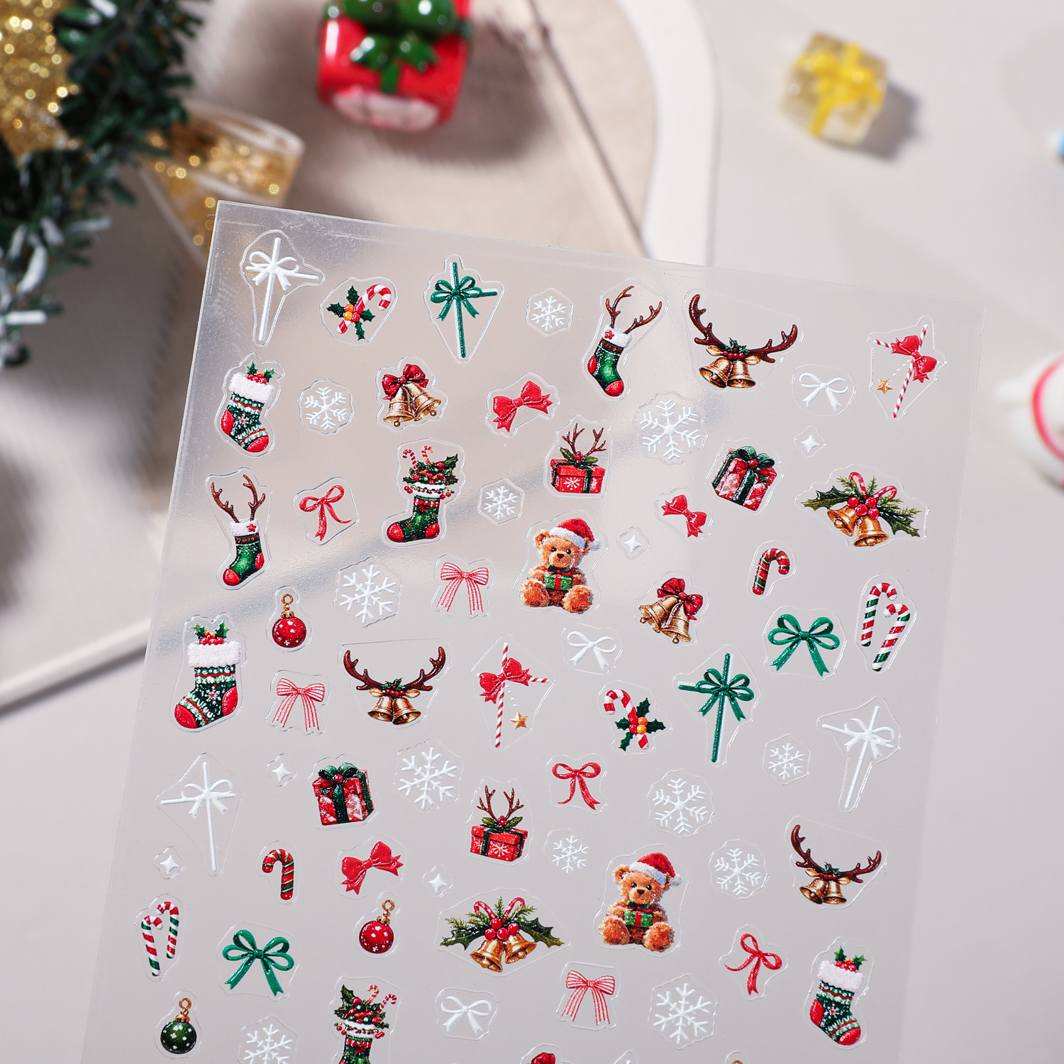Original Christmas Nail Art Sticker 5D Embossed Three-dimensional Happy Christmas Elements DIY Nail Sticker Ornament AA