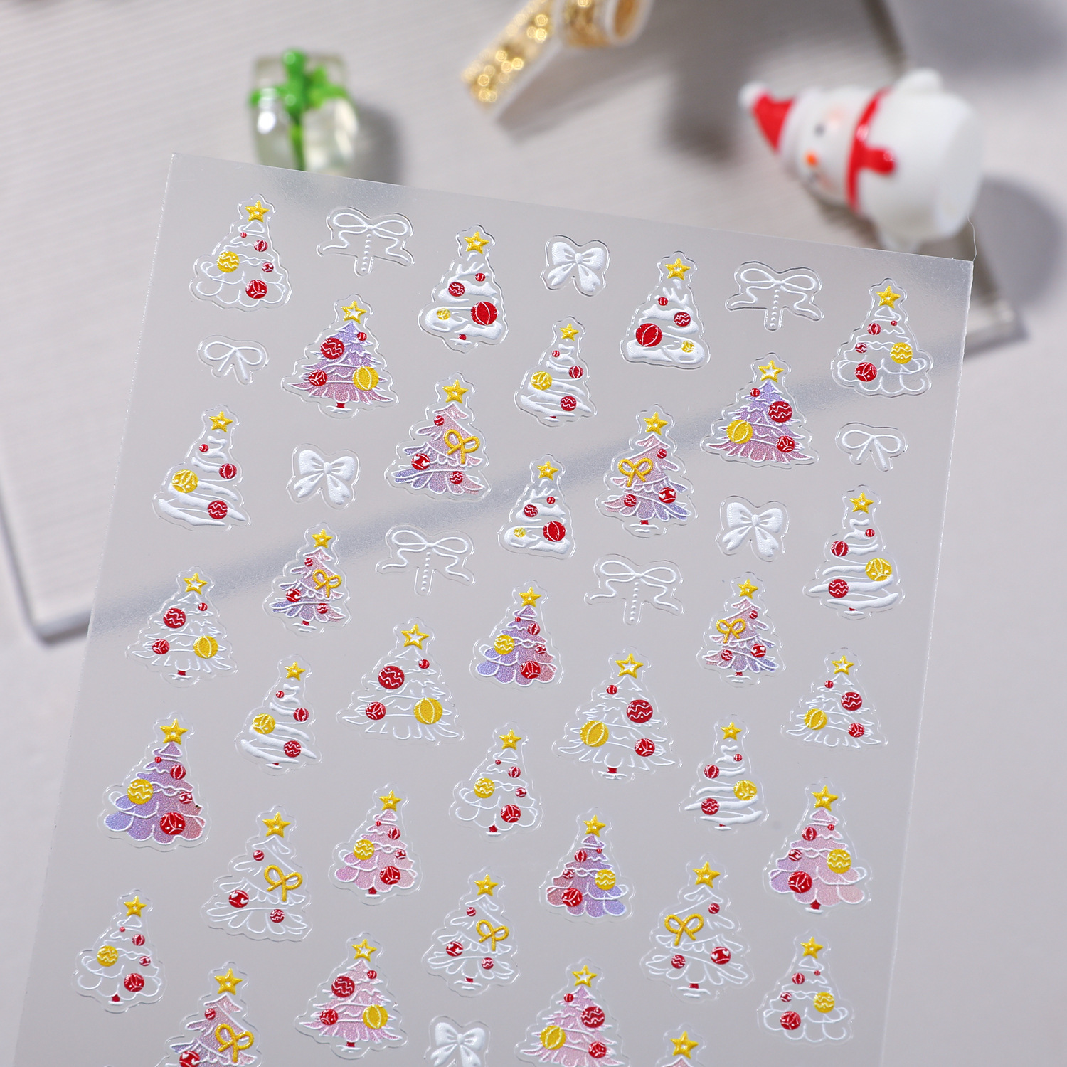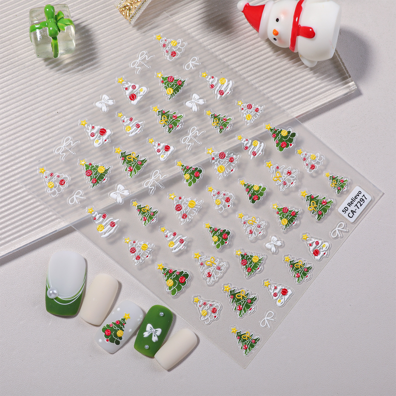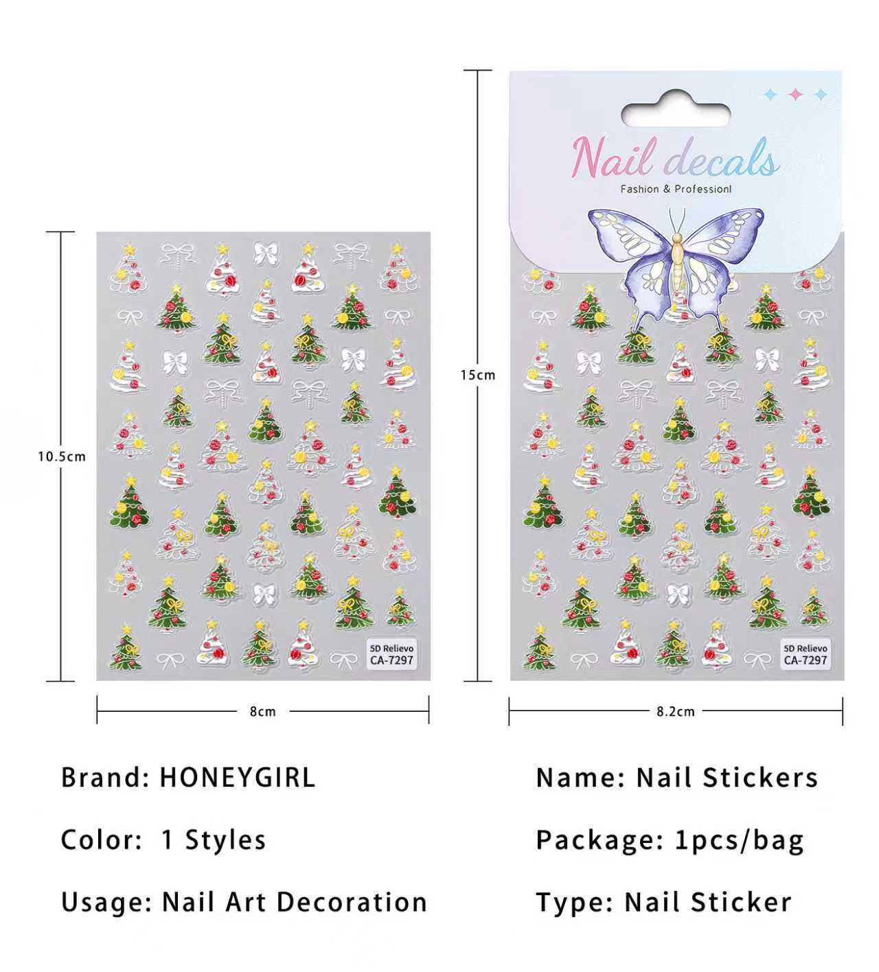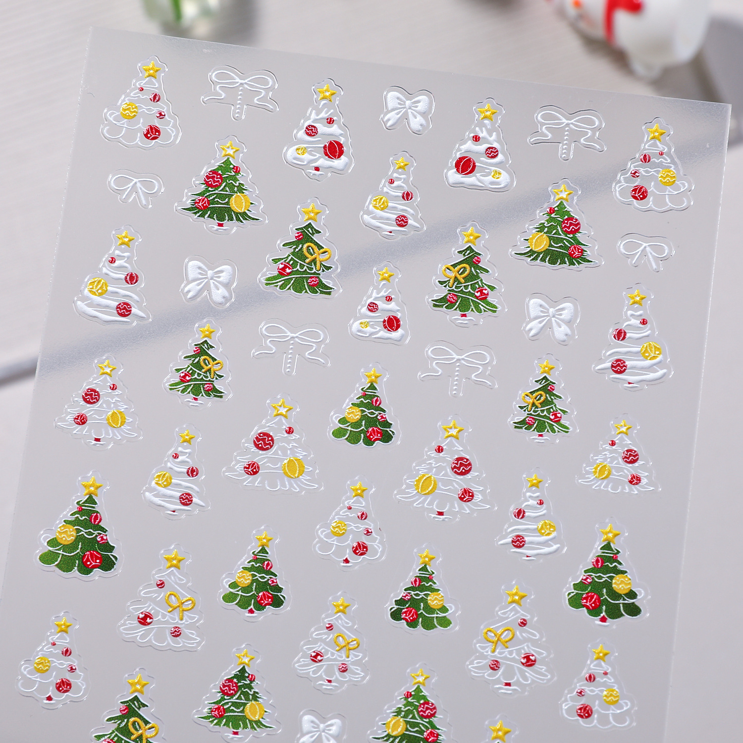 Original Christmas Tree Nail Art Sticker 5D Embossed Three-dimensional Happy Christmas Elements DIY Nail Sticker AA