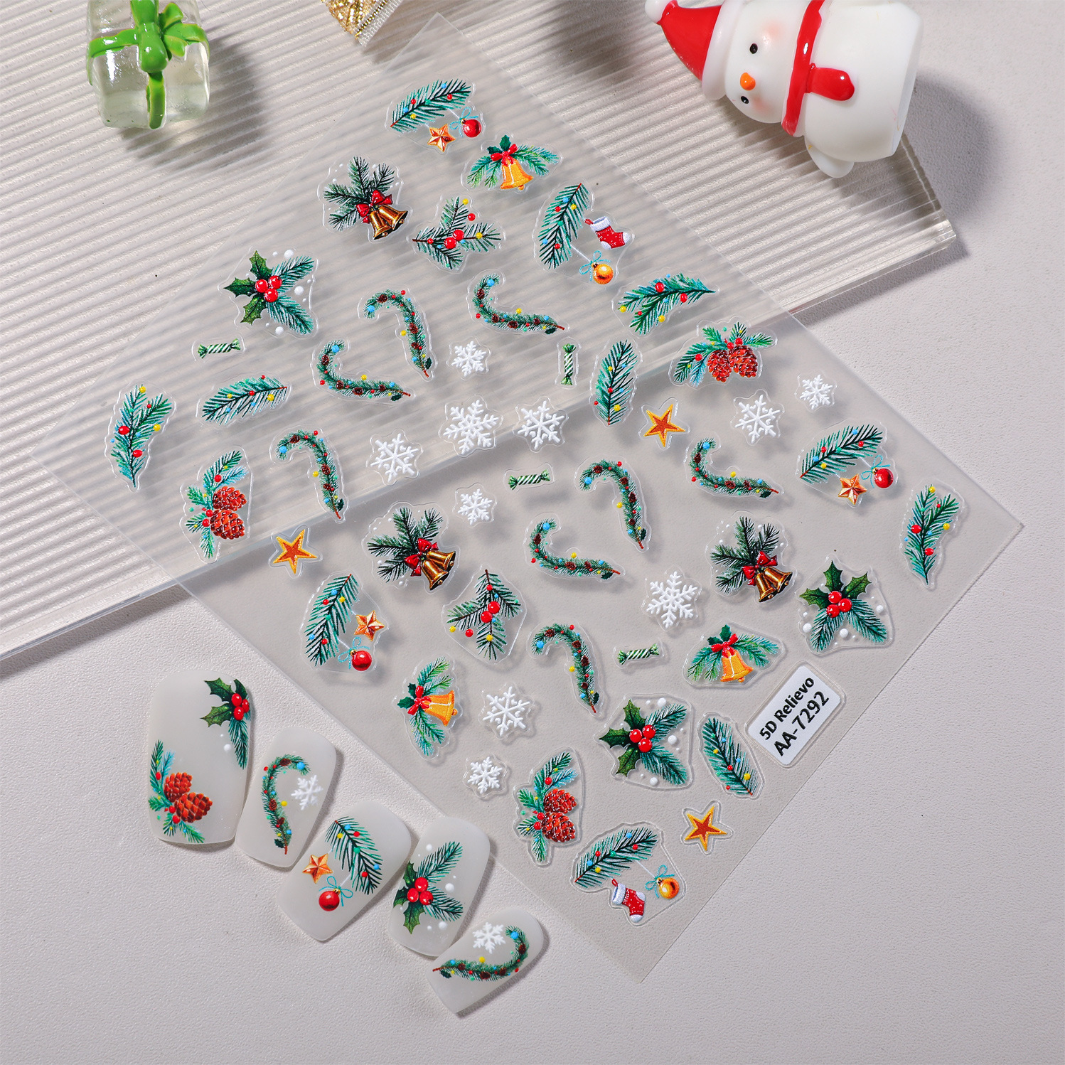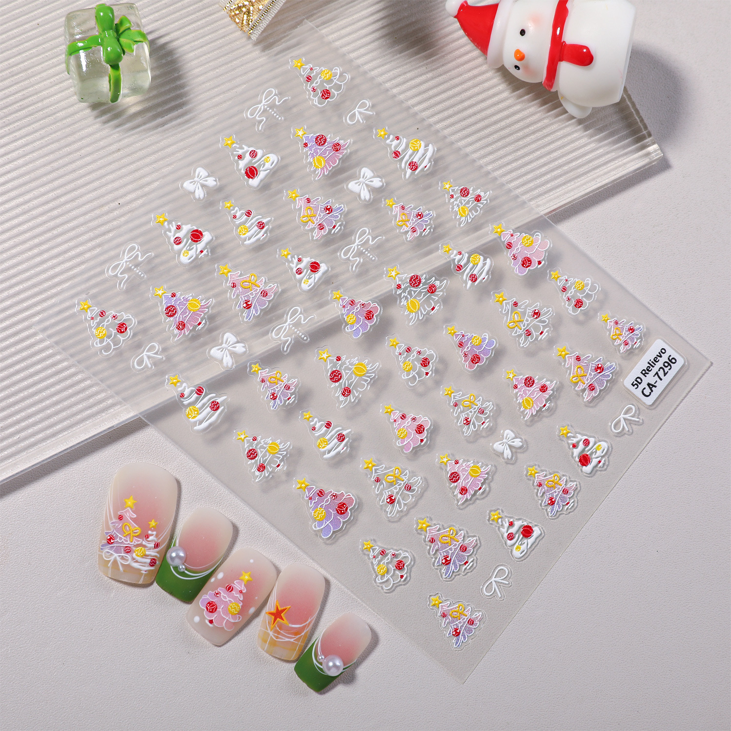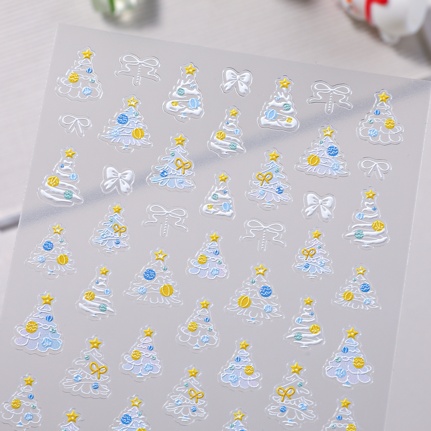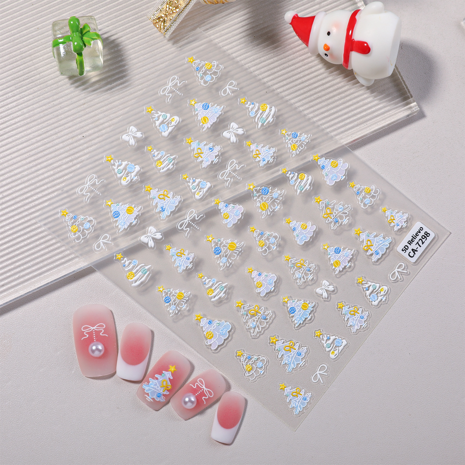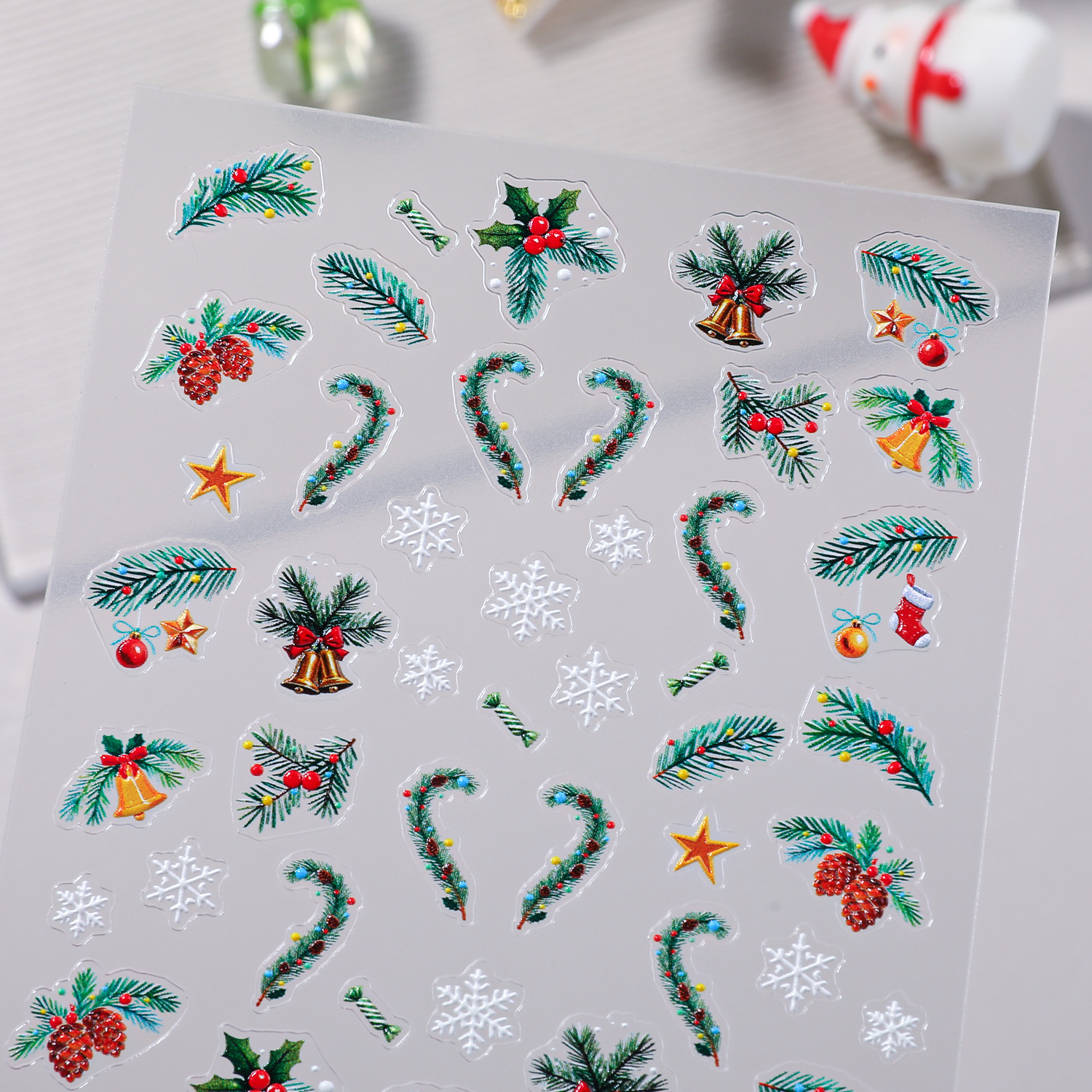 Original Christmas Tree Nail Art Sticker 5D Embossed Three-dimensional Happy Christmas Elements DIY Nail Sticker AA