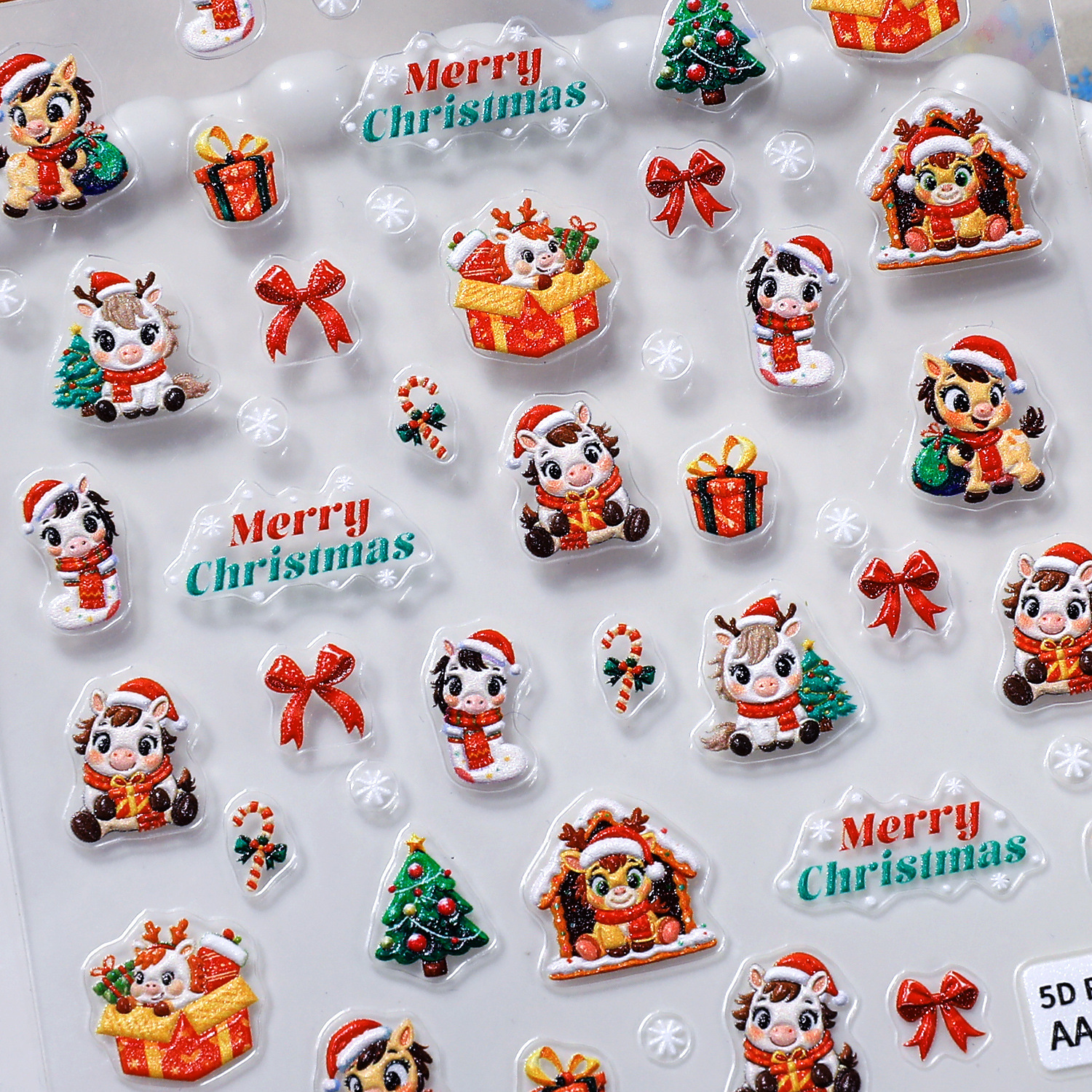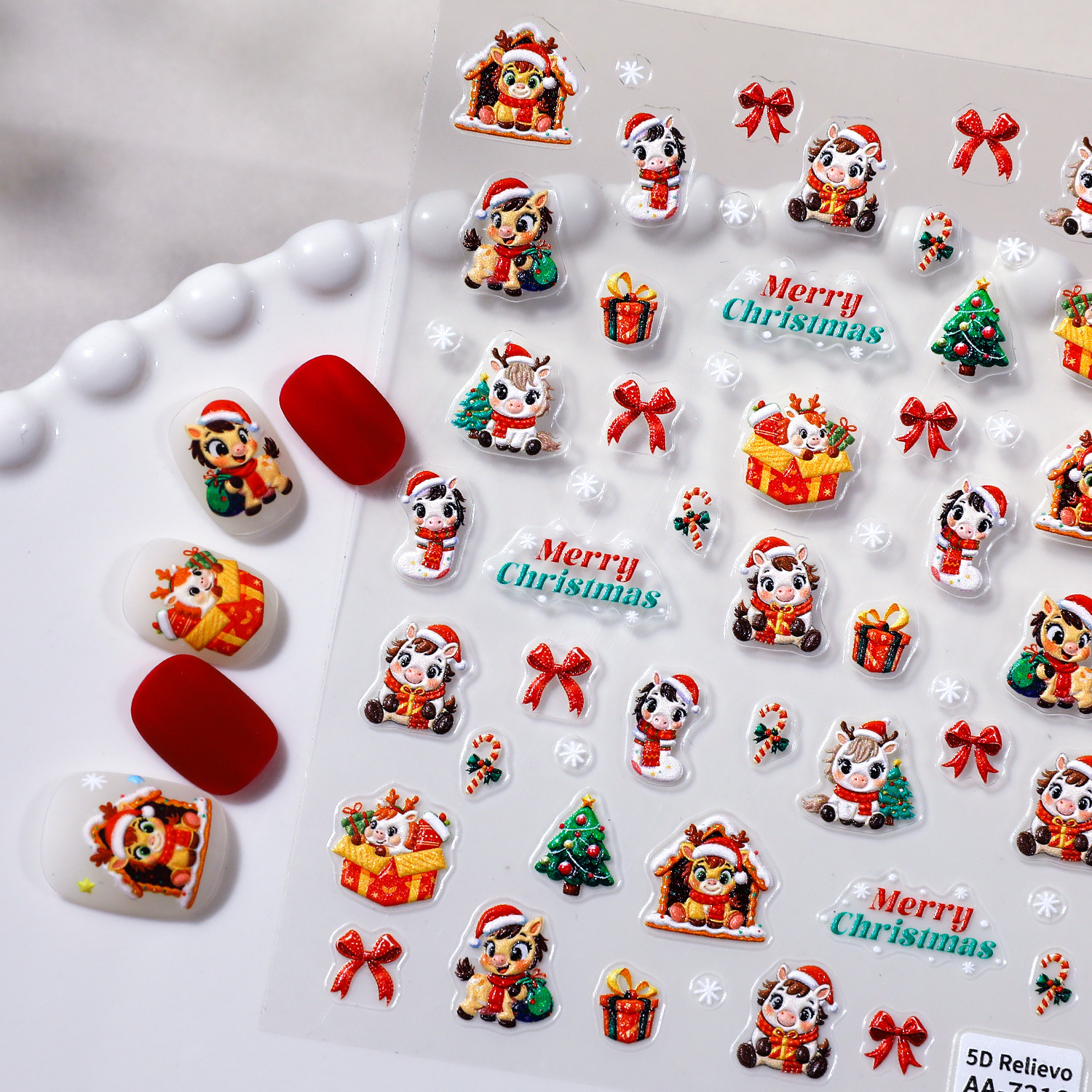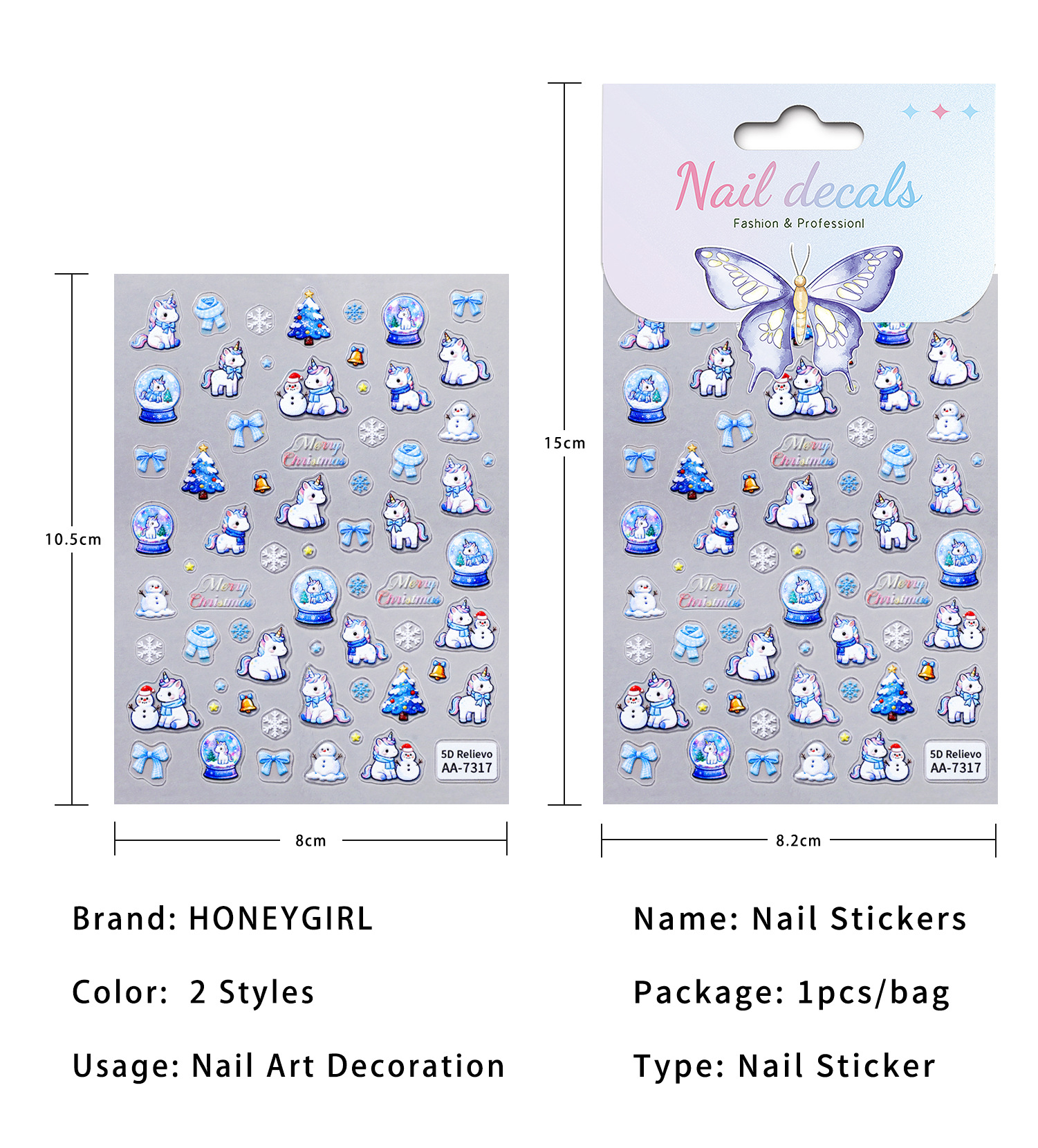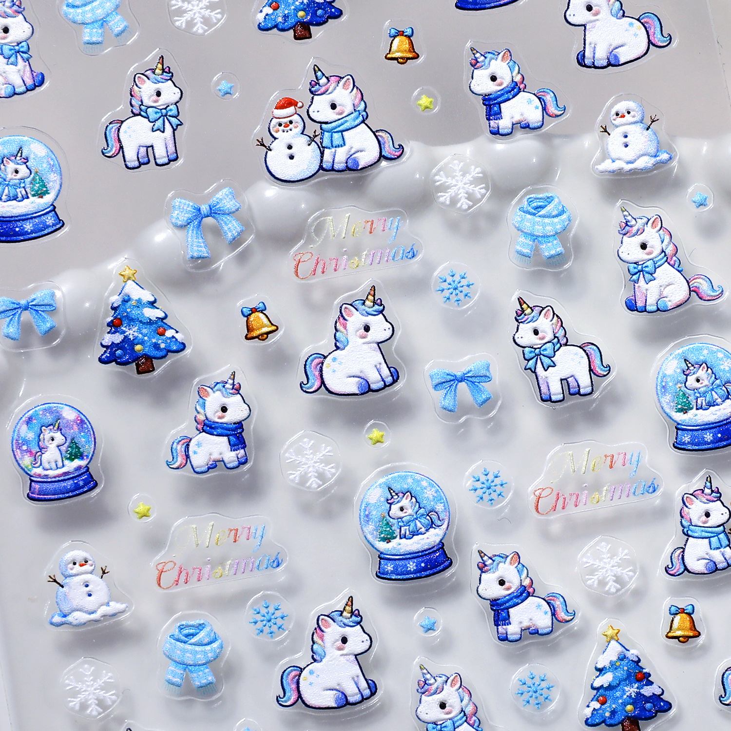 Original Snowflake Unicorn Nail Art Sticker 5D Embossed Three-dimensional Christmas Pony DIY Nail Sticker Ornament AA