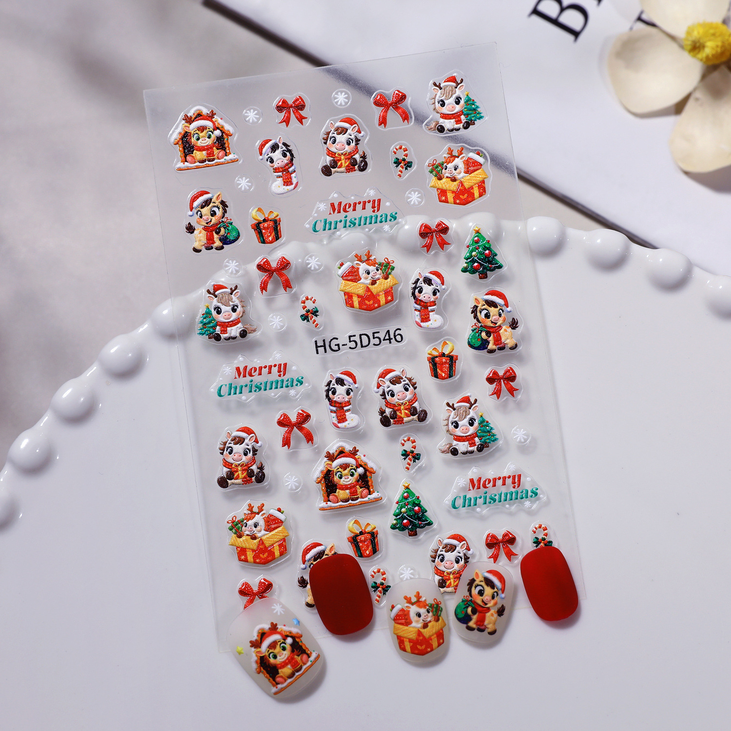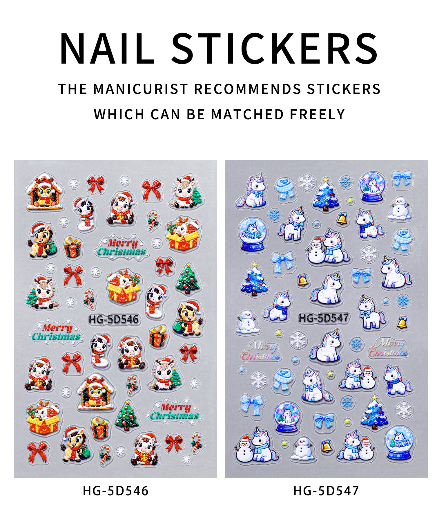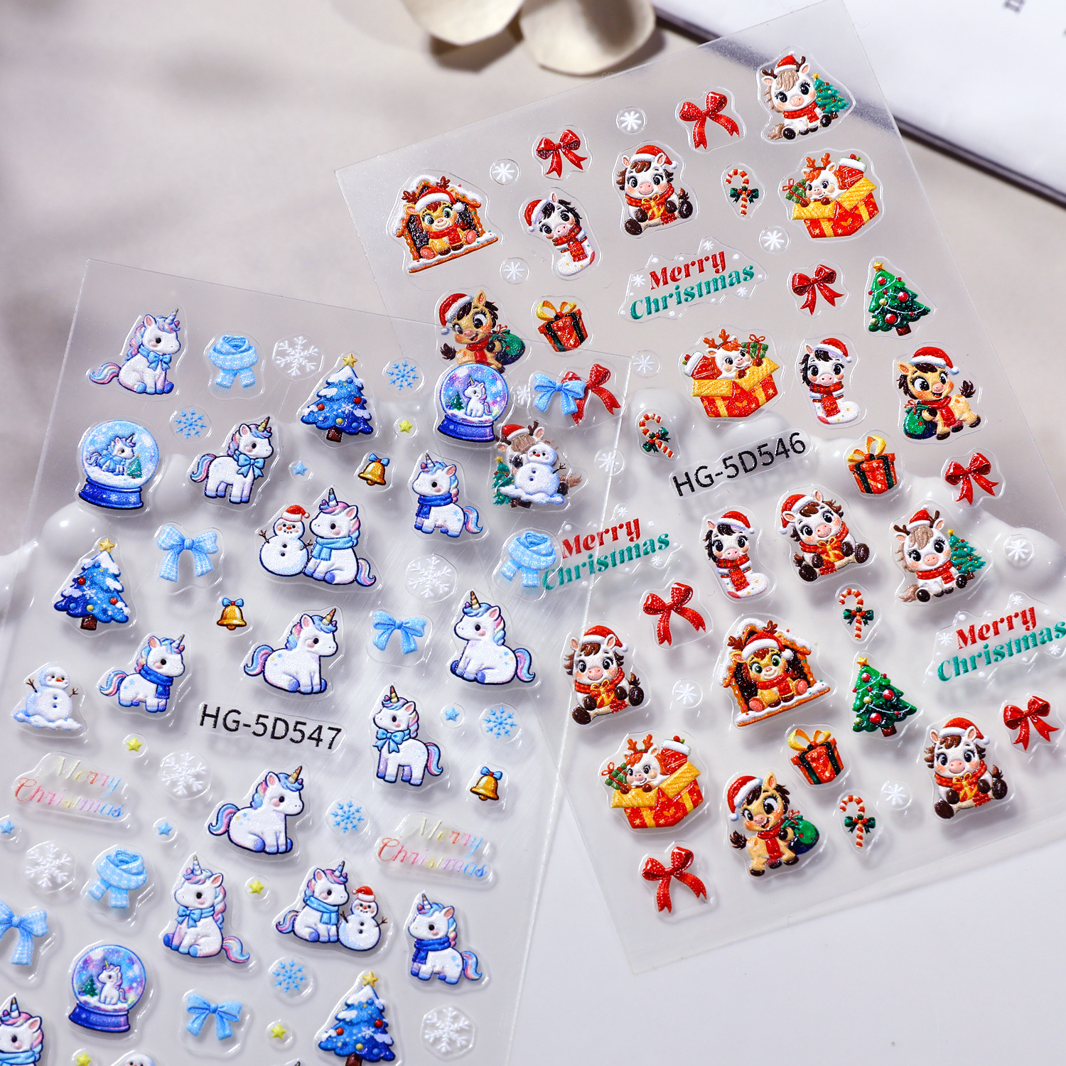 Original Snowflake Unicorn Nail Art Sticker 5D Embossed Three-dimensional Christmas Pony DIY Nail Sticker Ornament HG
