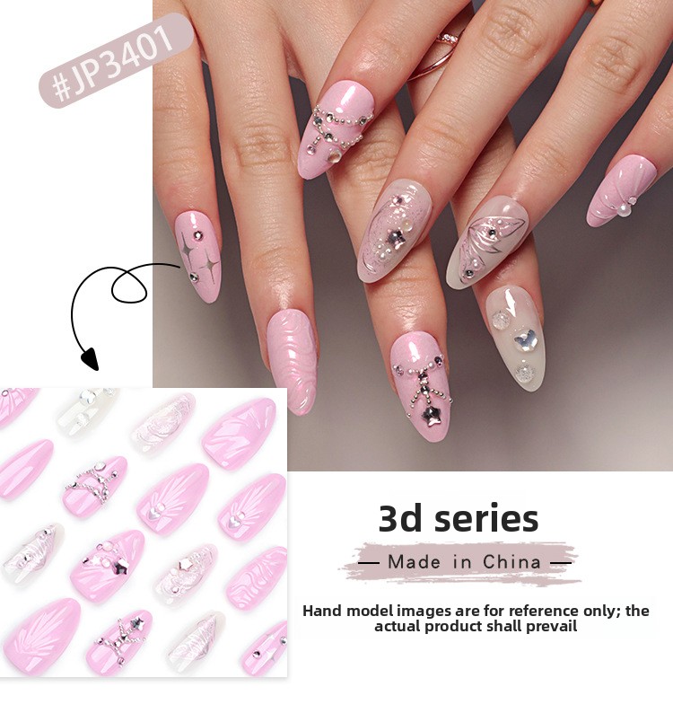 Sweet pink star manicure 3D ocean shell wearing armor three-dimensional butterfly flash diamond nail piece fake nails