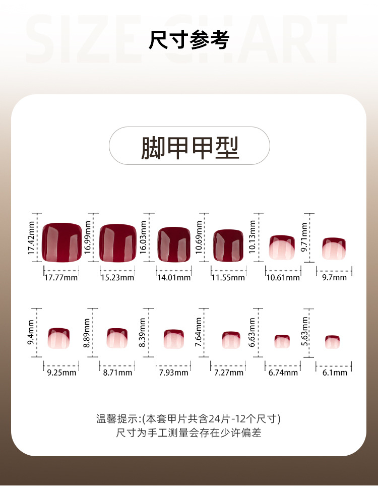 2. Machine-applied nails include the nail tips and outer packaging bag.