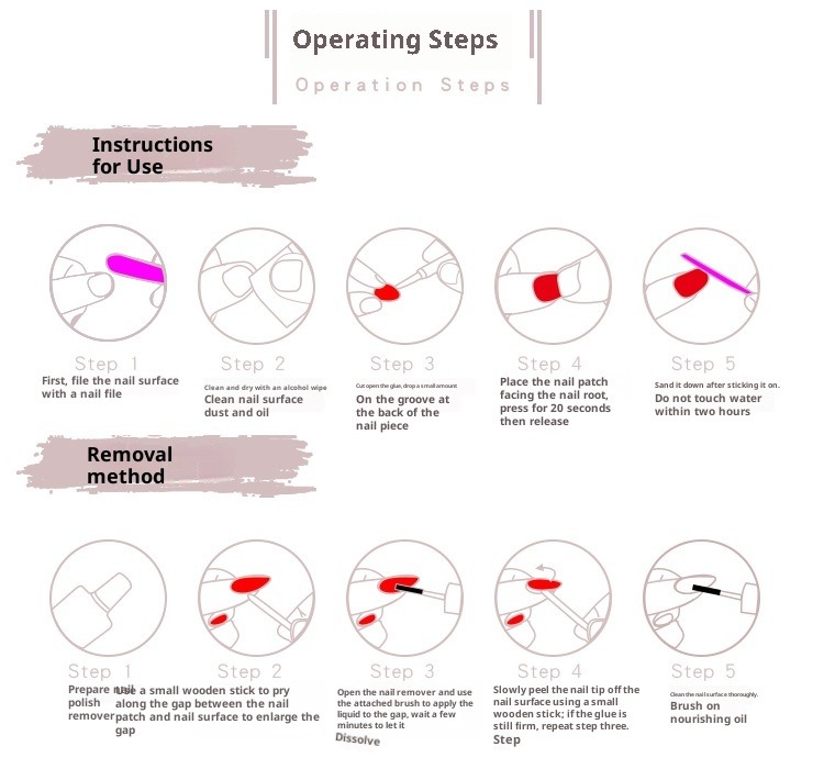 2. Machine-applied nails include the nail tips and outer packaging bag.