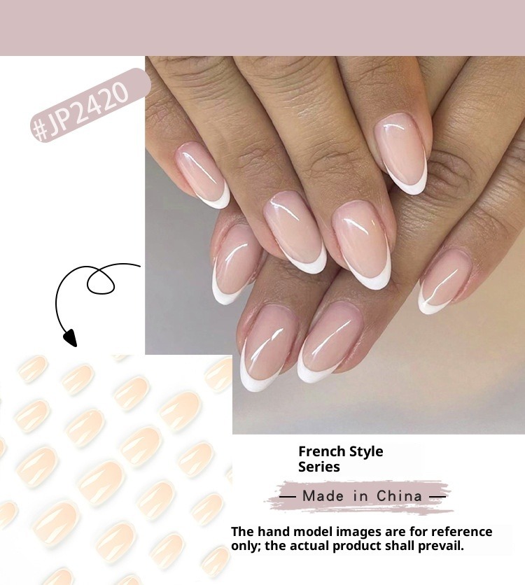 Wearing nail pads Simple white French fake nail nail pads Wearing nail pads Removable nail pads